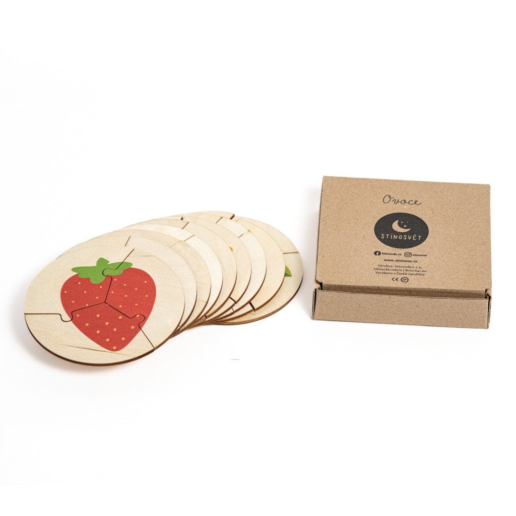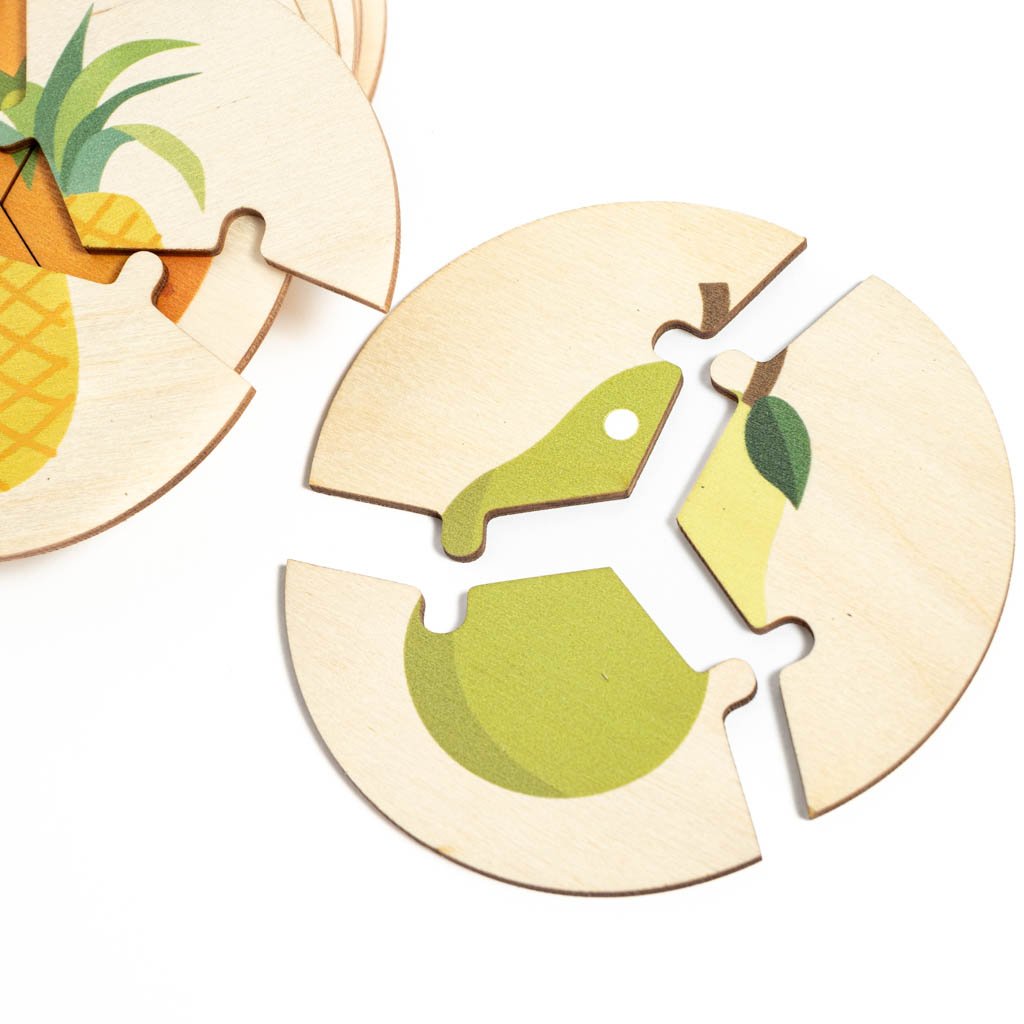 Podporujte kreativitu Vašich dětí s našimi dřevěnými puzzly! Puzzle Ovoce obsahují třídílné kolečka s ilustracemi ovoce, které děti mohou skládat a kombinovat.